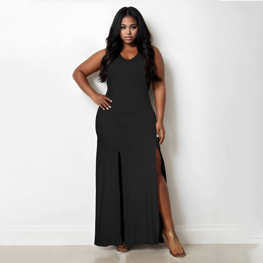 Plunge Neck Thigh Split Maxi Dress