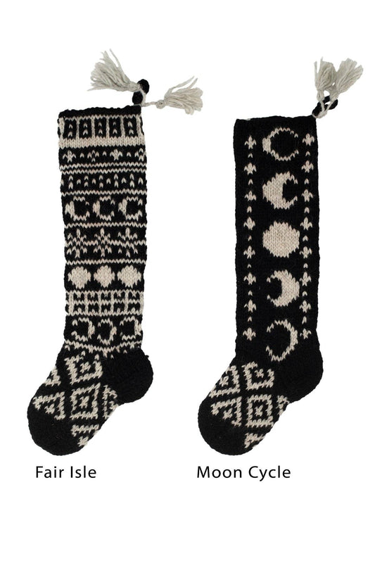Pure Wool Handcrafted Celestial Hand Knit Felt Home Stocking