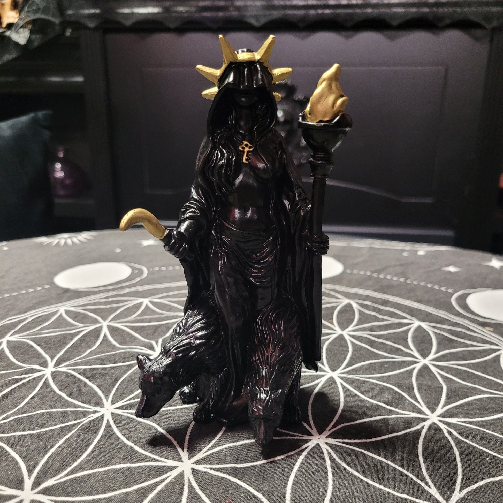Invoke the power of the Dark Hecate Statue, a mystical tribute to the ancient goddess of magic and crossroads. Crafted to embody her dark, enigmatic presence, this statue brings a powerful aura to any space, inspiring intuition, transformation, and protection. Perfect for those drawn to the mysteries of the night and the unseen forces that guide us.