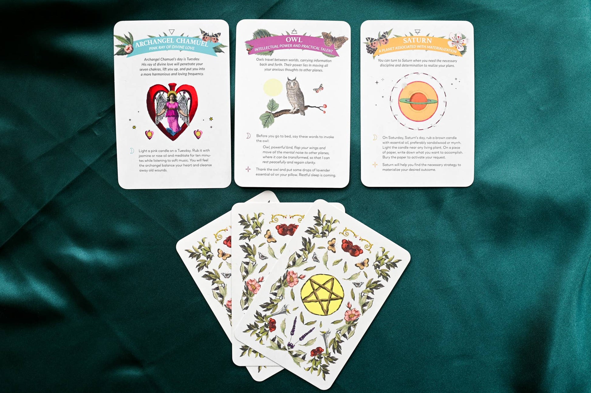 Elemental Spells offers forty-four simple but efficient spells for you to do at home that will deepen your knowledge about the diverse energies of the elements. With rituals, recipes, intentions to ask for magical assistance, the individual spell cards are divided into the four elements—Fire, Earth, Air, and Water, and feature planets, gods and goddesses, chakras, animal spirits, crystals, moon energies, and manifestations to aid you in your daily practice. Each card has a grounding color palette and offers guidance and instruction to work with their energies. Invoking the magic of Elemental Spells will focus your intention to attract new energies for personal growth, to help identify your wishes, gain clarity, and accept personal vulnerability.