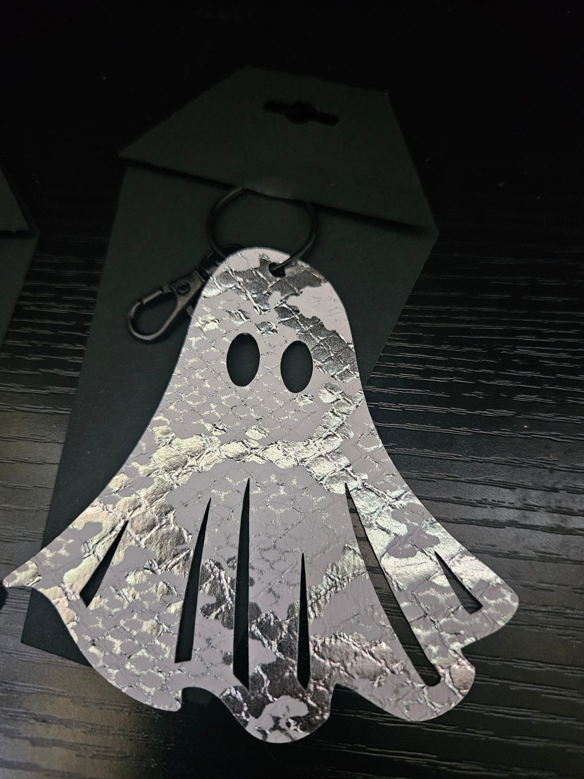 Summon a touch of spectral charm with this delightful ghost keychain. Crafted from soft vegan leather, each ethereal companion features its own unique pattern and style, making every piece distinctly magical. Perfect as a purse charm or keychain accessory, this whimsical spirit brings an enchanting presence to your everyday carry. Embrace the mystique of the supernatural with a cruelty-free creation that's as kind to the earth as it is captivating to behold.