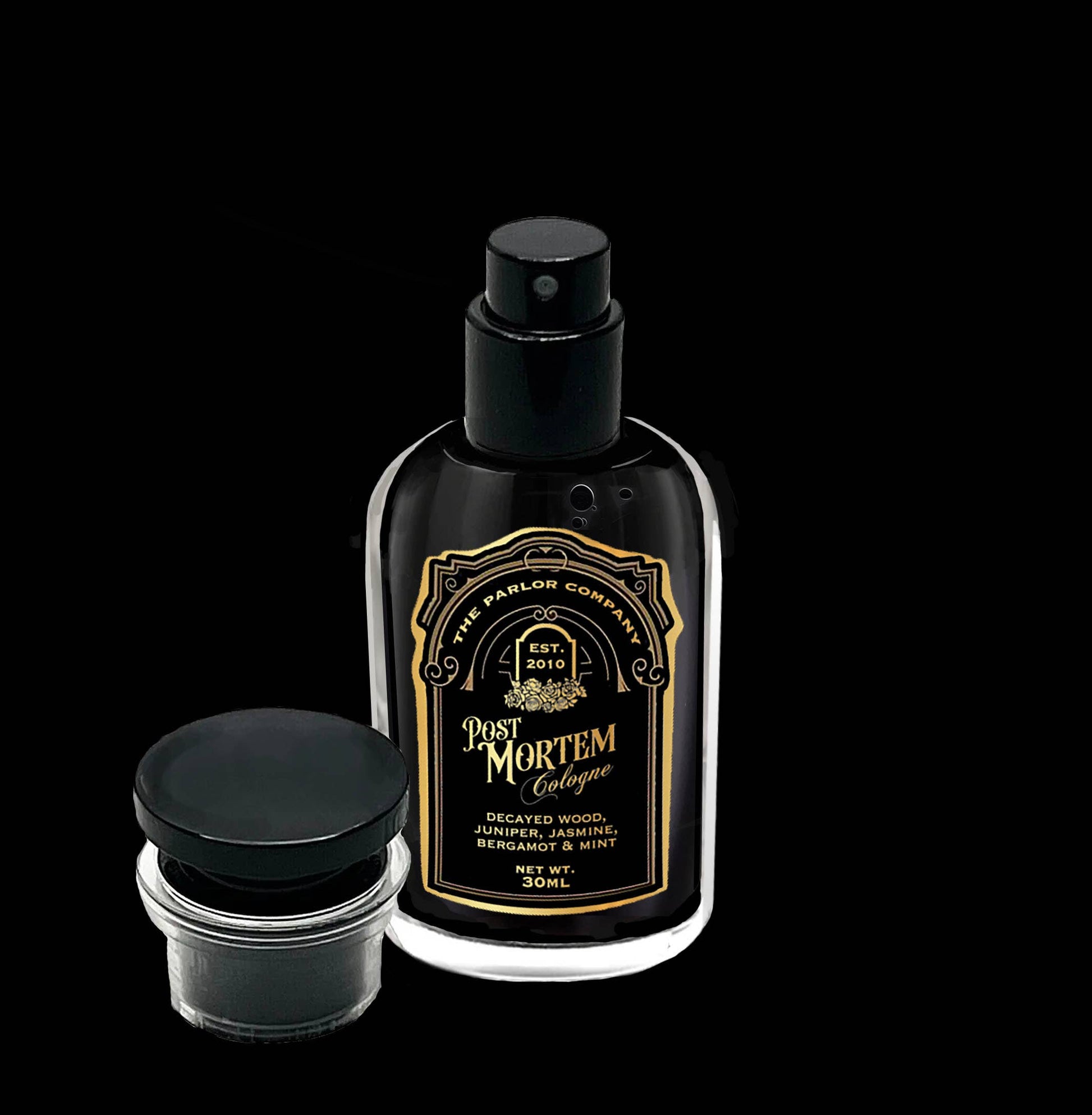 Post Mortem prepares your corpse with the fresh scent of embalming fluid and the moist earth of a sacred burial. A clean which scent blends bergamot, fresh juniper, jasmine & mint. A crisp unisex scent to make one rise from the dead.